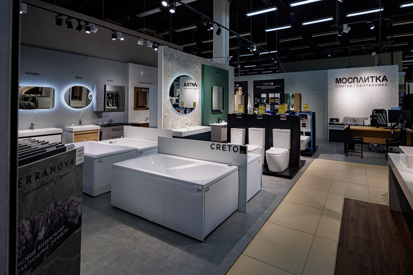 «Мосплитка» - сеть салонов и гипермаркетов керамической плитки, сантехники и керамогранита. История компании берет свое начало в 1996 году и на данный момент мы являемся самой крупной мультибрендовой сетью по всей России, объединяющей продукцию самых качественных и модных брендов.